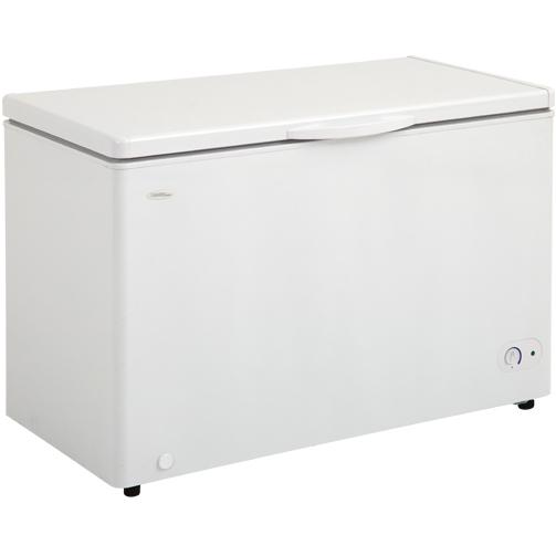Danby offers traditional style chest freezers to provide the ability to store large items or stack smaller items. The Danby DCFM289WDD Energy Star rated chest freezer features 10. 2 cubic feet of space, two adjustable, vinyl-coated baskets to store smaller items, and one divider for organization. The cabinet and rounded lid are foam insulated for keeping the cold air inside. This chest freezer has a defrost drain for easy cleaning and a mechanical thermostat for controlling the temperature. The front has adjustable legs for uneven surfaces and back castors for easily ... Read more